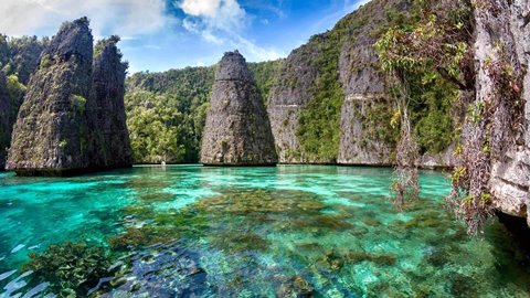Macro photographers have a field day in Fiabacet. Fiabacet is a night diving kingdom; huge sea slugs, crocodile fish, scorpionfish, camouflaged crabs, punching shrimps, and walking sharks create an underwater circus! Stay safe as you enjoy nature’s free entertainment. While the northern shore of Fiabacet is well protected from adverse weather, promising most sheltered snorkeling from the beach in Misool.